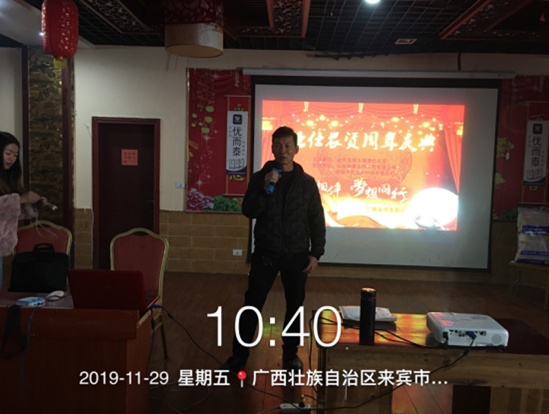 2019年11月29日冷鲜肥料优而泰走进广西长寿之乡、天然氧吧——金秀瑶族自治县桐木镇。以色列优而泰化肥有限公司联合优秀经销商卢经理举行感恩回馈订货会,本次会议以感恩为主题,以回馈常年对冷鲜肥料优而泰支持与肯定的广大果农为目的,上午10点,以卢老板的致辞“一路相伴,梦想同行”拉开了本次活动的序幕。